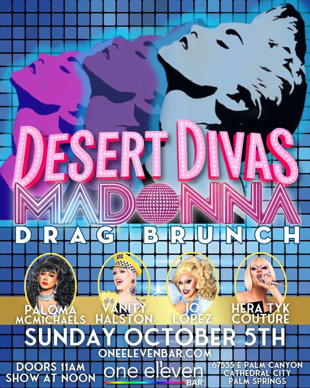 View fullsize SUNDAY BRUNCH celebrate 25 years of MUSIC from the queen of pop MADONNA with the DESERT DIVAS! Our award winning drag brunches are sale now through NOVEMBER!