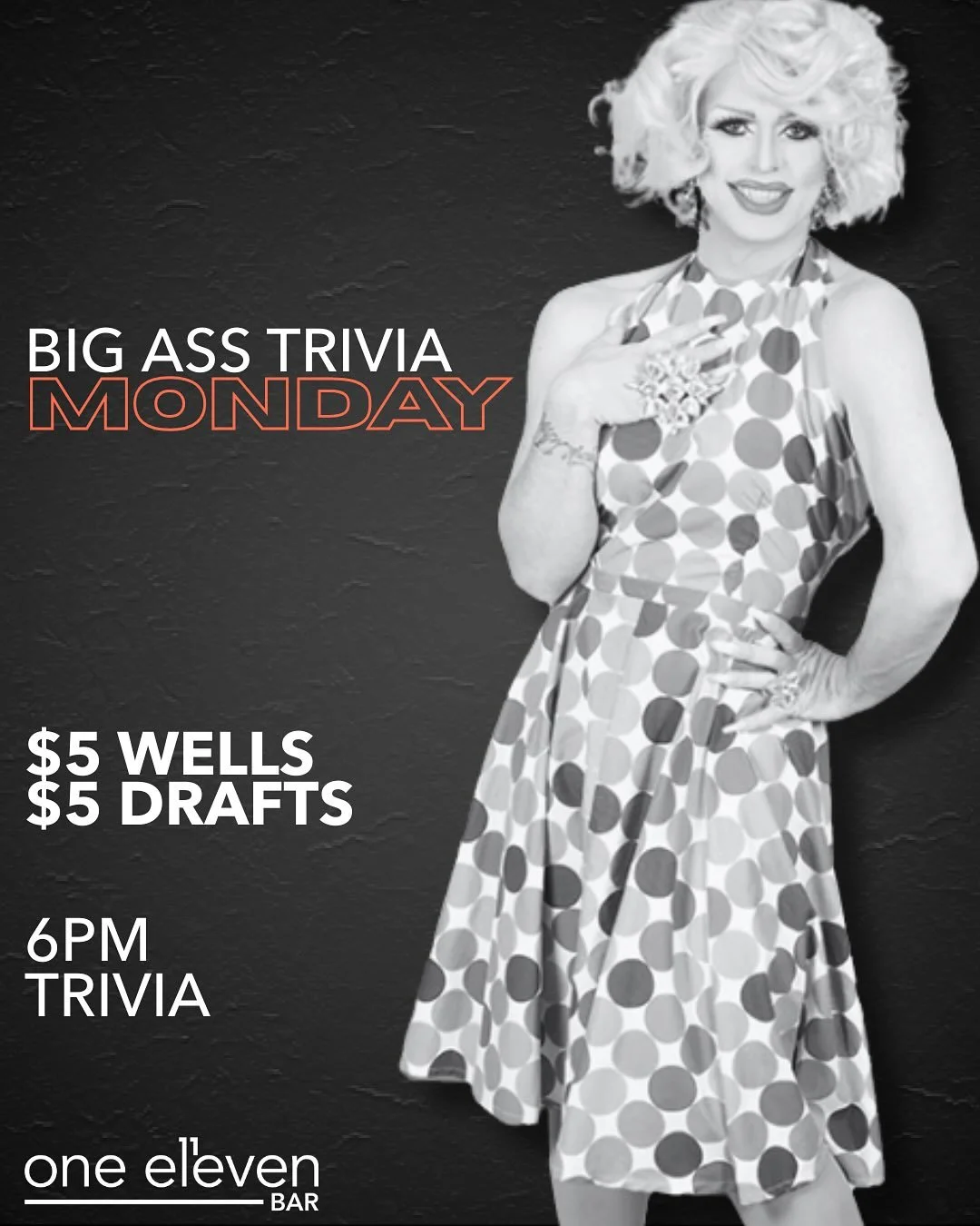 View fullsize MONDAYS are $5 WELLS & DRAFTS all night and BIG 🍑 TRIVIA now starting at 6pm!