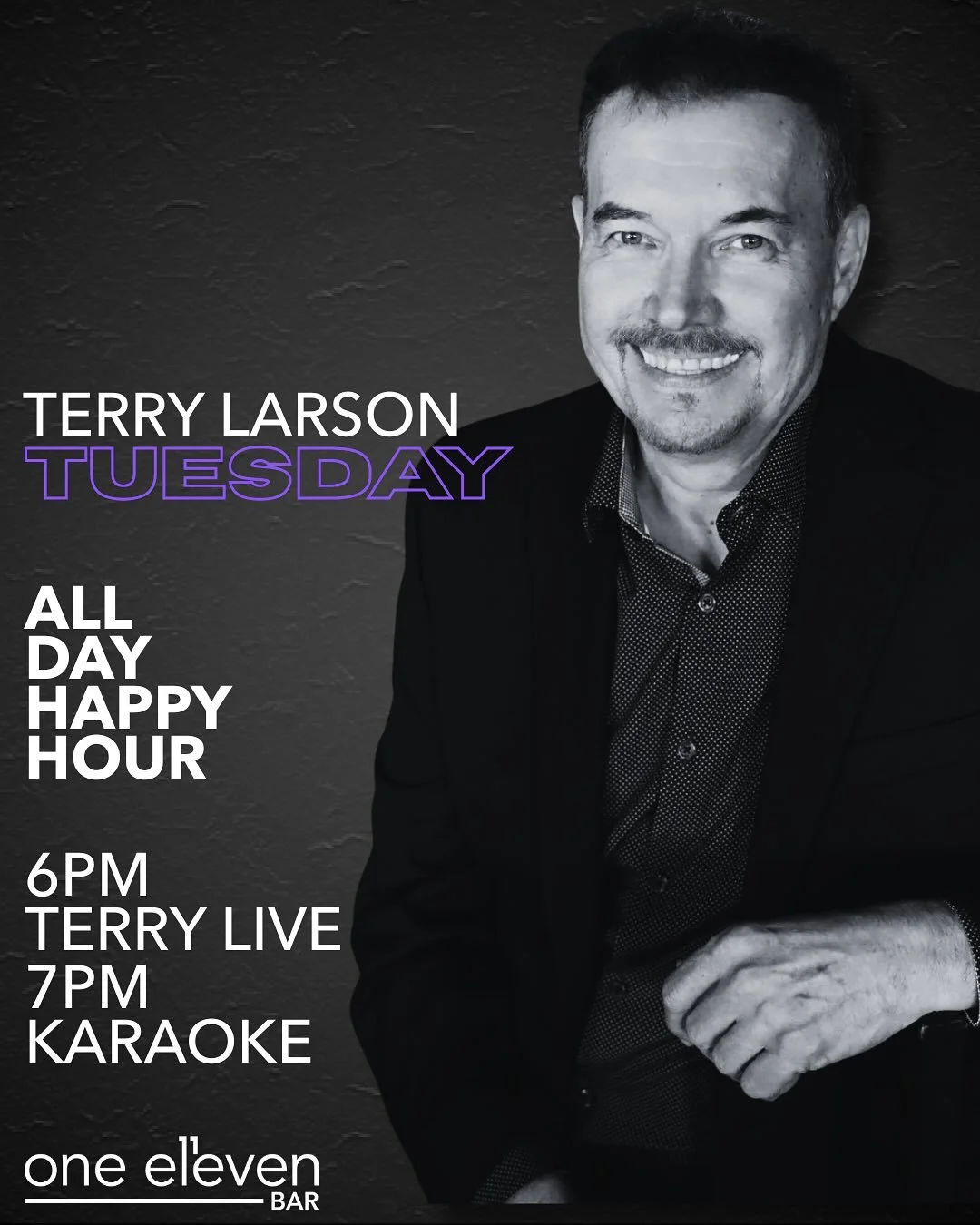 View fullsize TUESDAYS are HAPPY HOUR ALL DAY & NIGHT! Terry Larson live at 6pm and TERRY-OKE at 7:30!