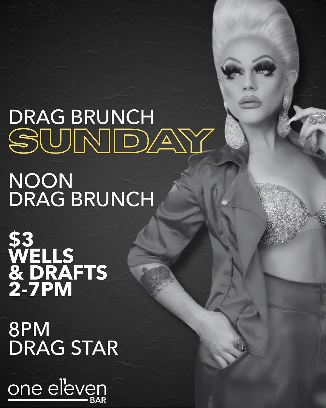 View fullsize SUNDAYS we DRAG BRUNCH at noon followed by $3 WELLS + DRAFTS til 7pm and DRAG STAR at 8pm!