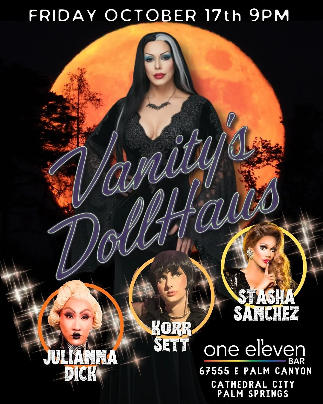 View fullsize FRIDAYS at your DESERT DRAG DESTINATION feature happy hour until 7pm followed by Vanity’s DOLLHAUS AT 9pm! #SupportLocalDrag #lgbtqowned #dragshow #dragshows #dragqueen #dragqueens #dragartist #dragbar #dragqueenlife #localqueen #rupaulsdragrac