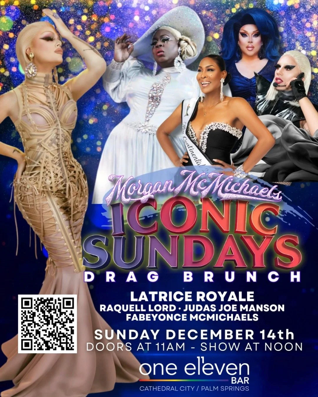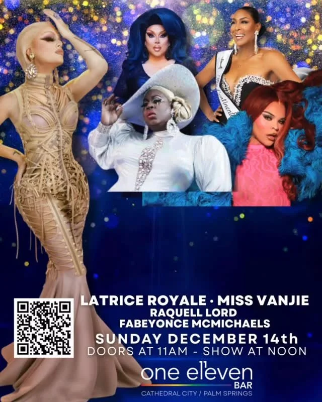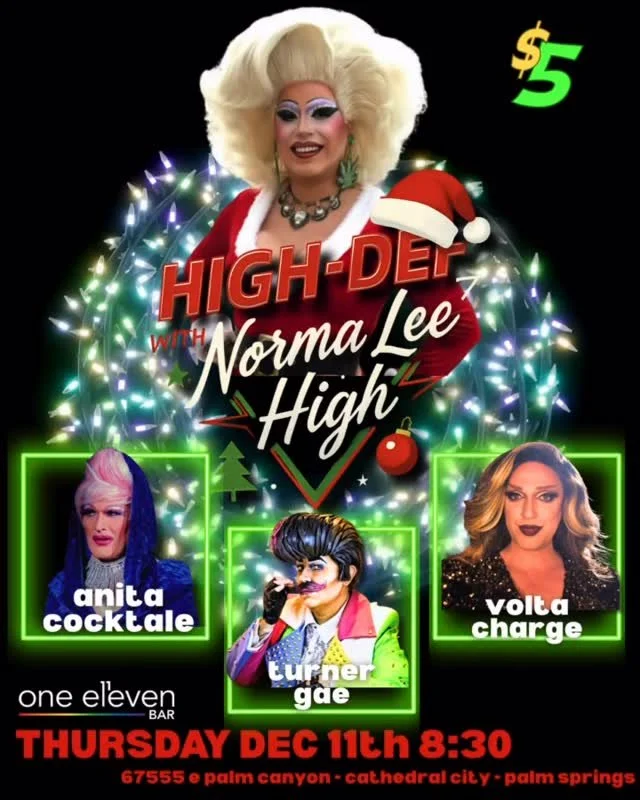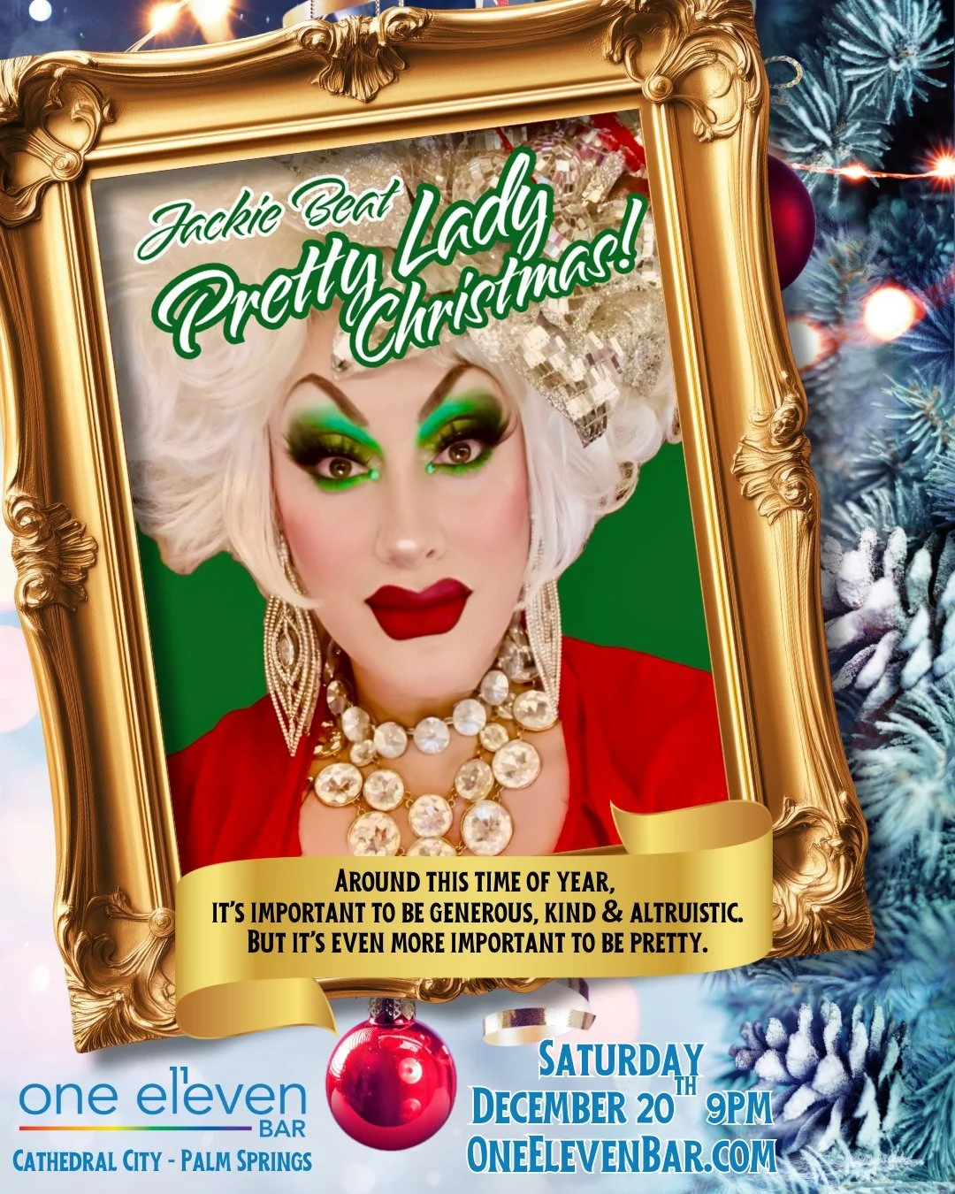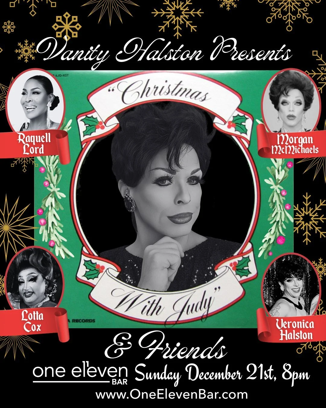 View fullsize THIS WEEKEND at your DESERT DRAG DESTINATION 🎄🎁❄ JUDY GARLAND returns for her annual Christmas show with special guests, JACKIE BEAT (limited walks ins available) and the annual HALSTON FAMILY BRUNCH! Get your seats only at oneelevenbar.com
