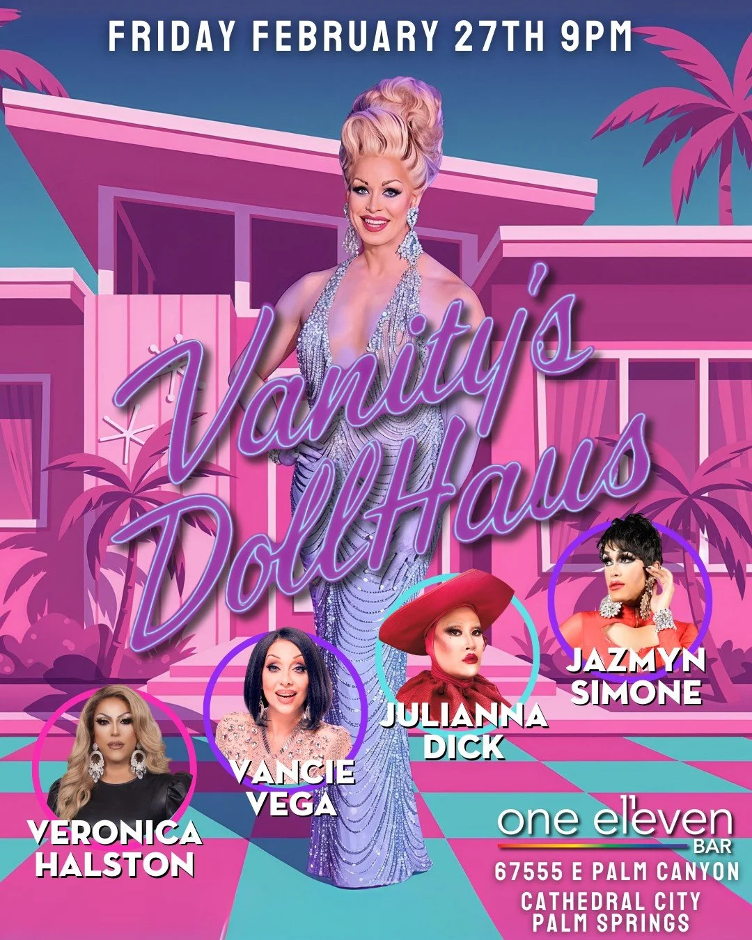 View fullsize THIS WEEKEND at your DESERT DRAG DESTINATION 🏳️‍🌈 Kick things off Friday with Vanity’s DollHaus 🏠 Keep the energy high on Saturday with PowerHaus ⚡ Superstars Brunch hits Sunday for a celebrity-illusion extravaganza 🌟 then close it out