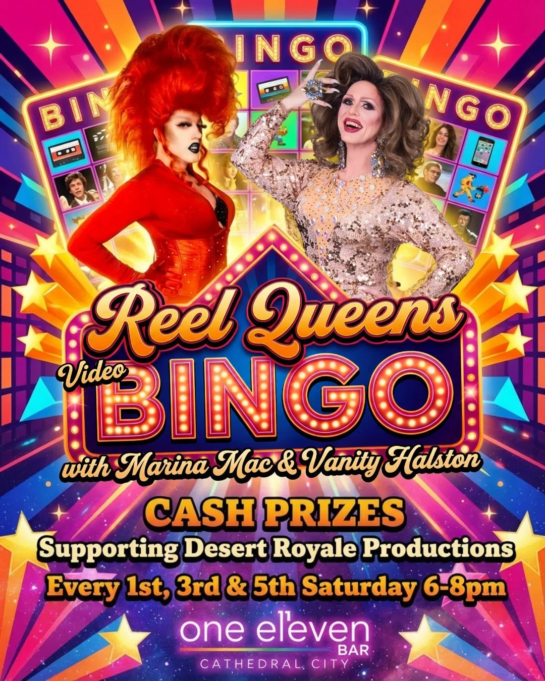 View fullsize SATURDAYS are getting REEL with the return of MARINA MAC! 🎞  Starting March 7th - REEL QUEENS  VIDEO BINGO where you’ll play along with pop-culture video clips from the 80s to today, packed with iconic moments, throwbacks, and surprises. Featu