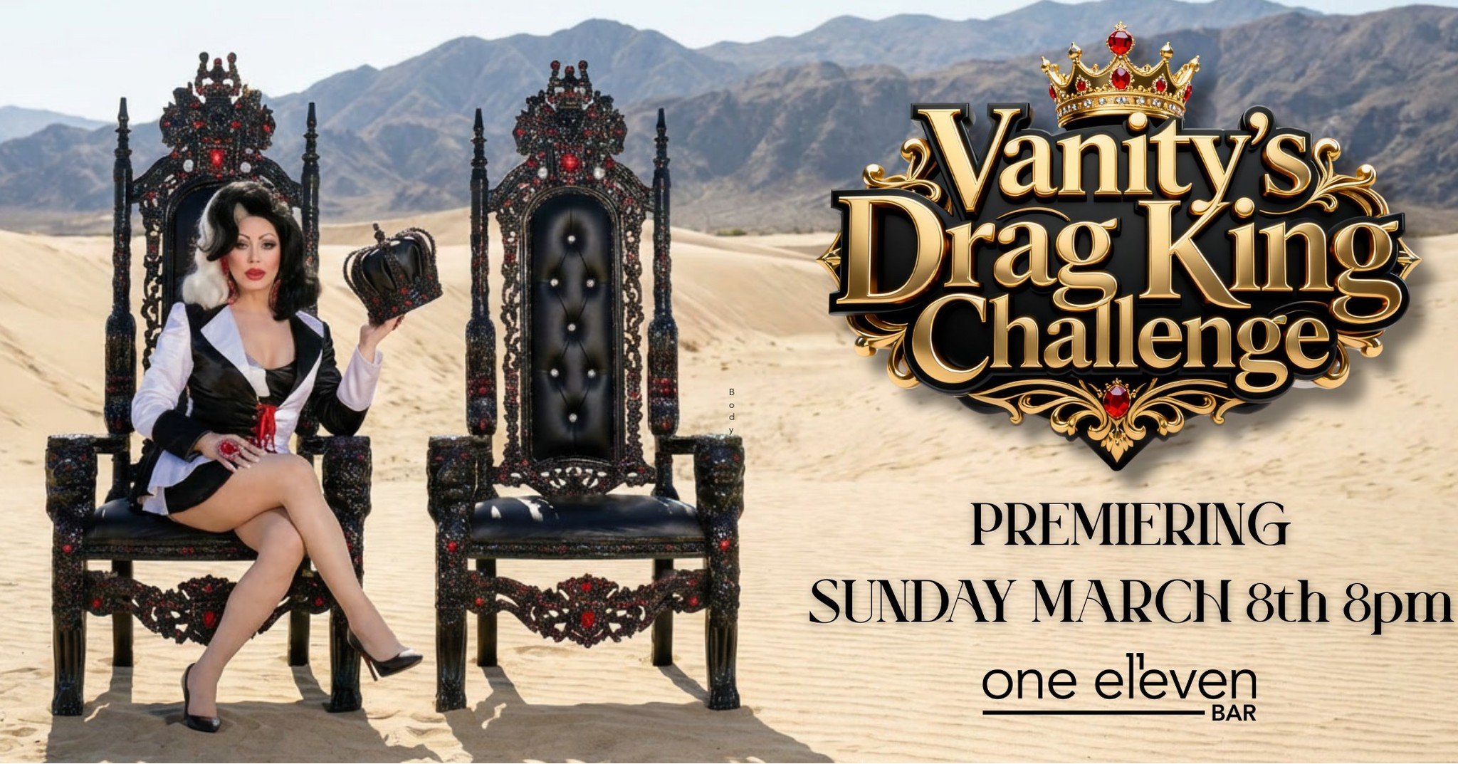 View fullsize 👑 SUNDAY MARCH 8th 👑 The next chapter of Vanity’s DRAG STAR CHALLENGE has arrived with Vanity’s Drag KING Challenge—the must-see competition where glamour meets grit and kings are crowned. This series brings fierce performers to t